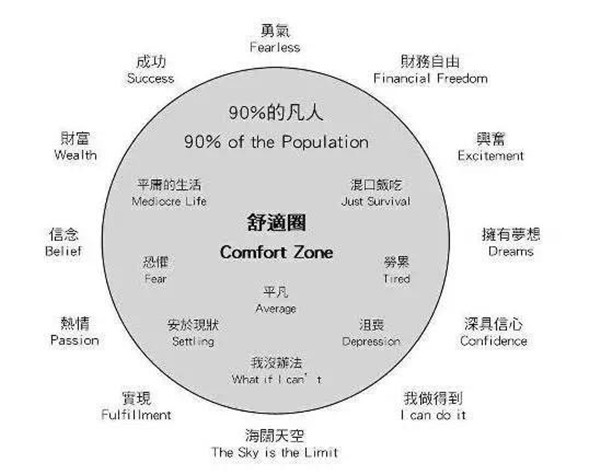 “舒适圈”是能力形成,边界不重要,大小才关键,你要不停的把“学习区”变成“舒适区”。