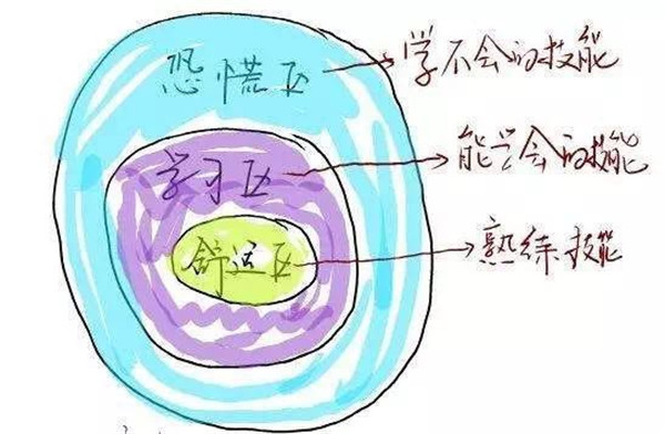 “舒适圈”的那个圈,就是你内心的安全边界,这个理论本来是解释某些心理状态的,但后来,发展成了“刻意学习”的理论后,作用发生了变化。