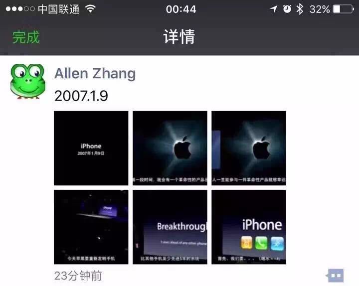 2017年1月9号,张小龙将小程序发布日放在iPhone发布十周年纪念日,并且在朋友圈发了6张iPhone发布会照片,希望像颠覆人类对手机的三观那样颠覆人类对移动的传统认知。