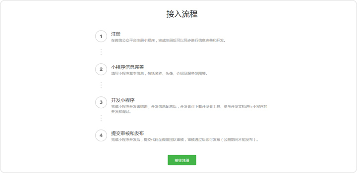 2.查看详情进入小程序官网,然后一下向下,在点击前往注册小程序。