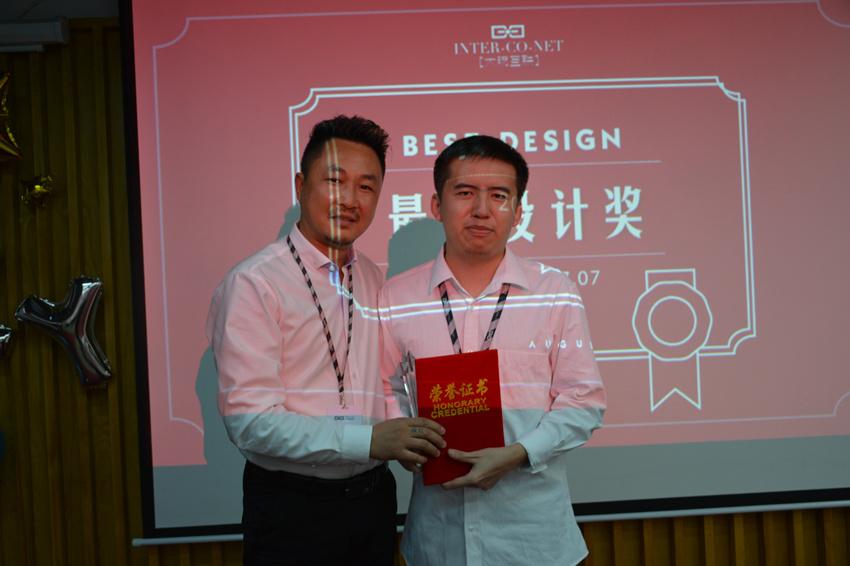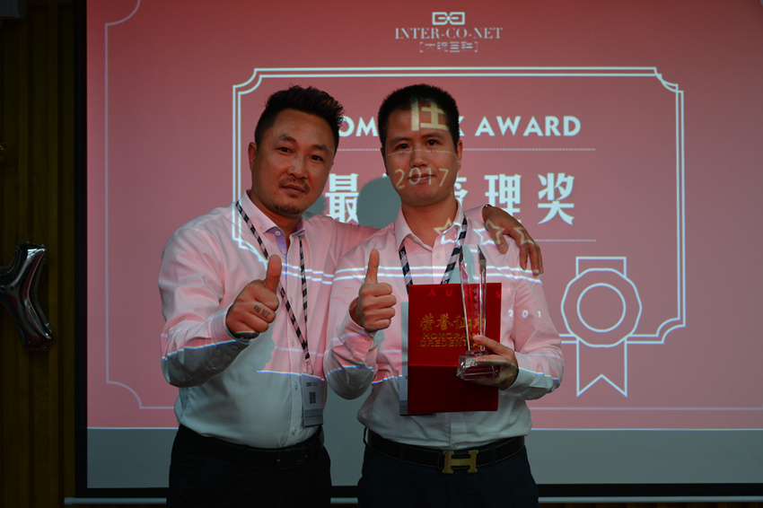 优秀员工奖:谢钰涛(左一)、吴航峰(右一)