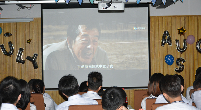 在会议最后,公司组织大家一起观看了电影“忠爱无言”,这是一部讲述一个半身瘫痪的中年男人老于与一只犬(又名“二货”)由格格不入的相互争斗,到最后相依为命、互为依靠的故事。